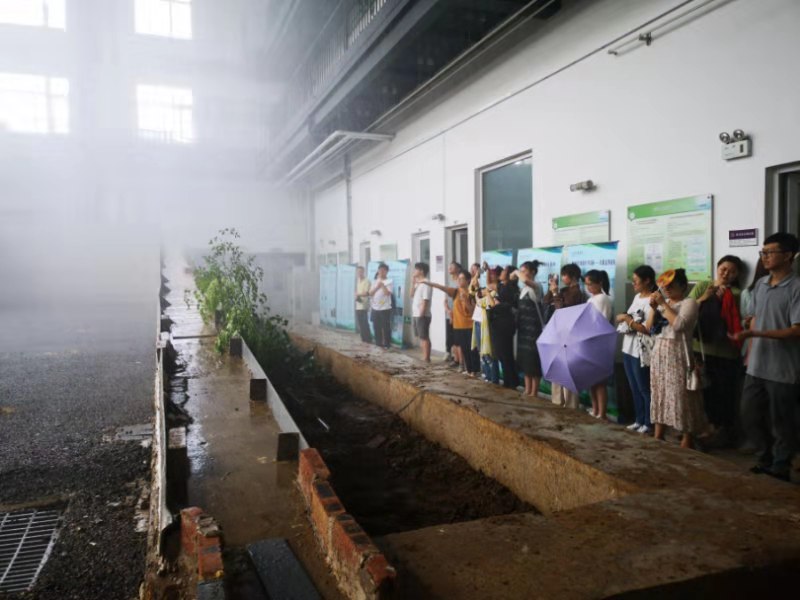 7月4日上午,参观学校的雨水实验室。实地观摩了目前正在进行的两个课题。其中一个是道路的排水状况,还有一个是重金属对雨水成分的影响。下面左图为街道下雨的排水状况实验,通过人工降雨并收集仪器采集的数据,得出降雨量和排水状况的关系,从而优化目前城市的道路,解决城市内涝的问题。右图是实验室的实验人员为我们讲述重金属对雨水成分的污染情况,如果能够有效去除重金属对雨水的污染,那么就可以推动雨水回收的发展。