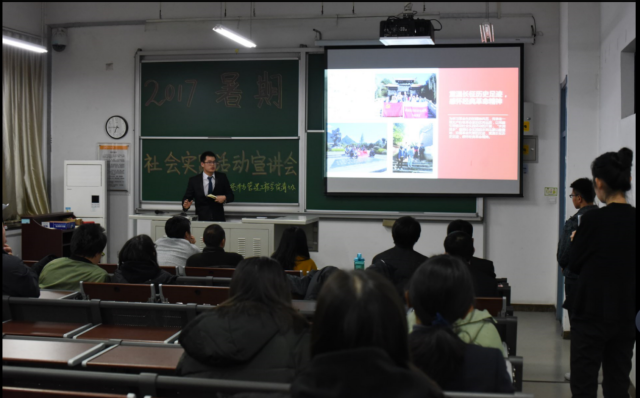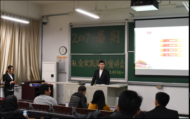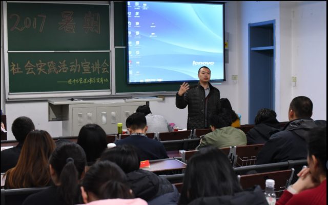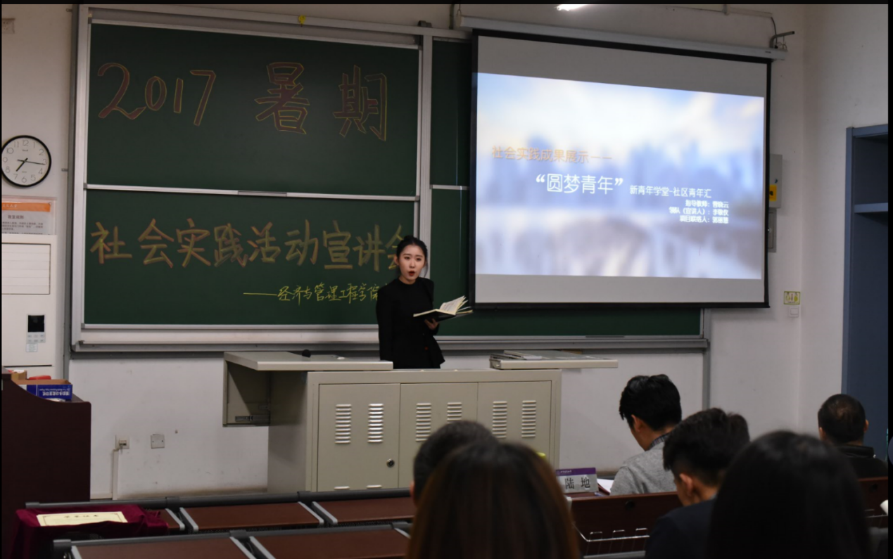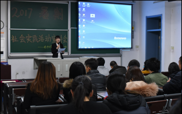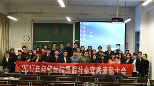 “学在经管,行在志愿。脚踏实地,实践为先”。2017年12月6日晚18:30,百合漫画 2017年暑期社会实践表彰大会于学A320准时召开。百合漫画 党委副书记郝迈老师、2015级辅导员陆地老师、2016级辅导员王嫣然老师出席本次活动,众多学生观众慕名前来聆听学习。