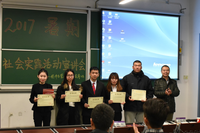 四个小组分别宣讲完毕后,党委副书记郝迈书记对此次宣讲会进行总结发言,他强调:“学在经管,行在志愿,我志我愿,希望同学们能切实履行。”随后参加会议的老师向每一个团队颁发了荣誉证书和暑期社会实践活动展示宣传册,此次表彰大会圆满结束。