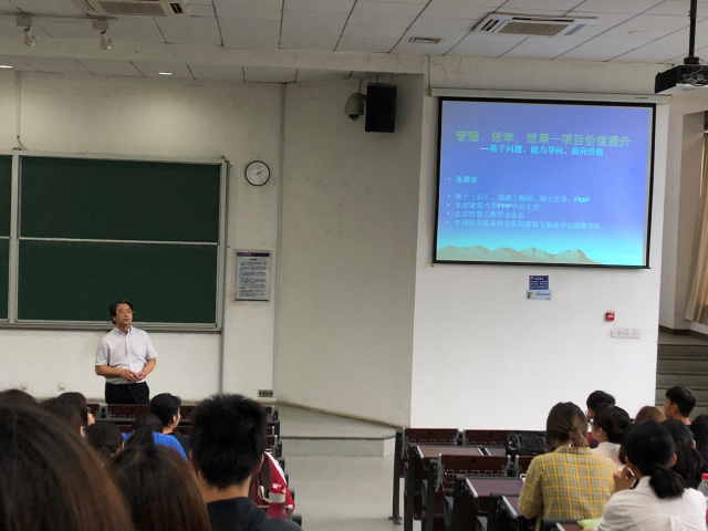 7月9日下午,张国宗老师为同学们带来了一场题为《管理、效率、效果-项目价值提升:基于问题、能力导向,面向价值》的学术讲座。张老师一连串的发问引发同学们对本专业的浸入式思考,结合自己近20年的一线从业经验,张老师为同学们打开了工程项目管理的知识大门。