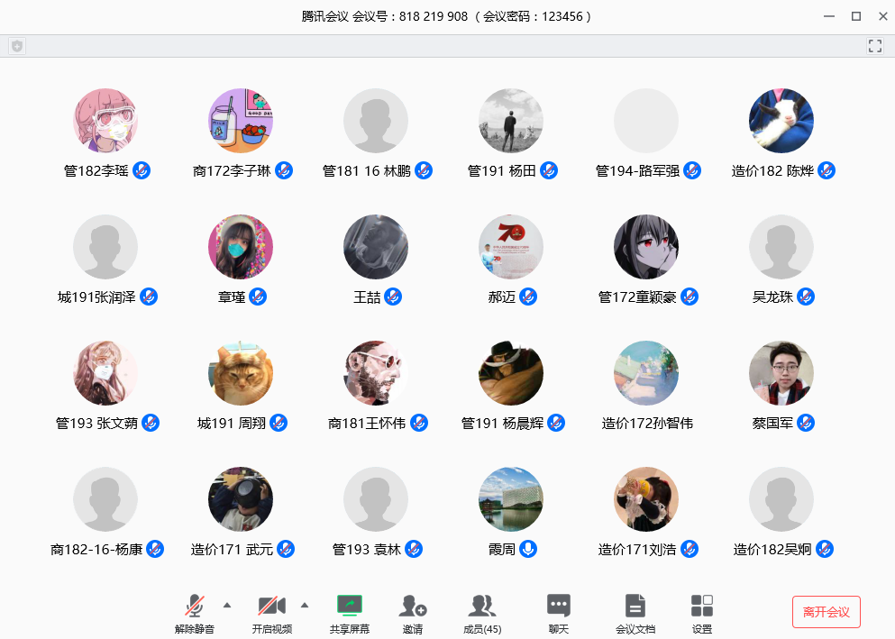 新冠肺炎疫情全国蔓延,牵动着每一位国人的心,举国同心协力、共克时艰。为贯彻落实教育部“停课不停学”的号召,自2月24日以来,百合漫画 本学期110余门课程陆续开展了在线教学活动。为保证在线教学质量,共建优良课堂环境,百合漫画 于2020年3月6日中午召开线上座谈会。百合漫画 副院长周霞,副书记郝迈,辅导员章瑾、董礼、王喆以及各班学生代表参加了本次线上会议。教务员魏祎老师主持了本次座谈会。