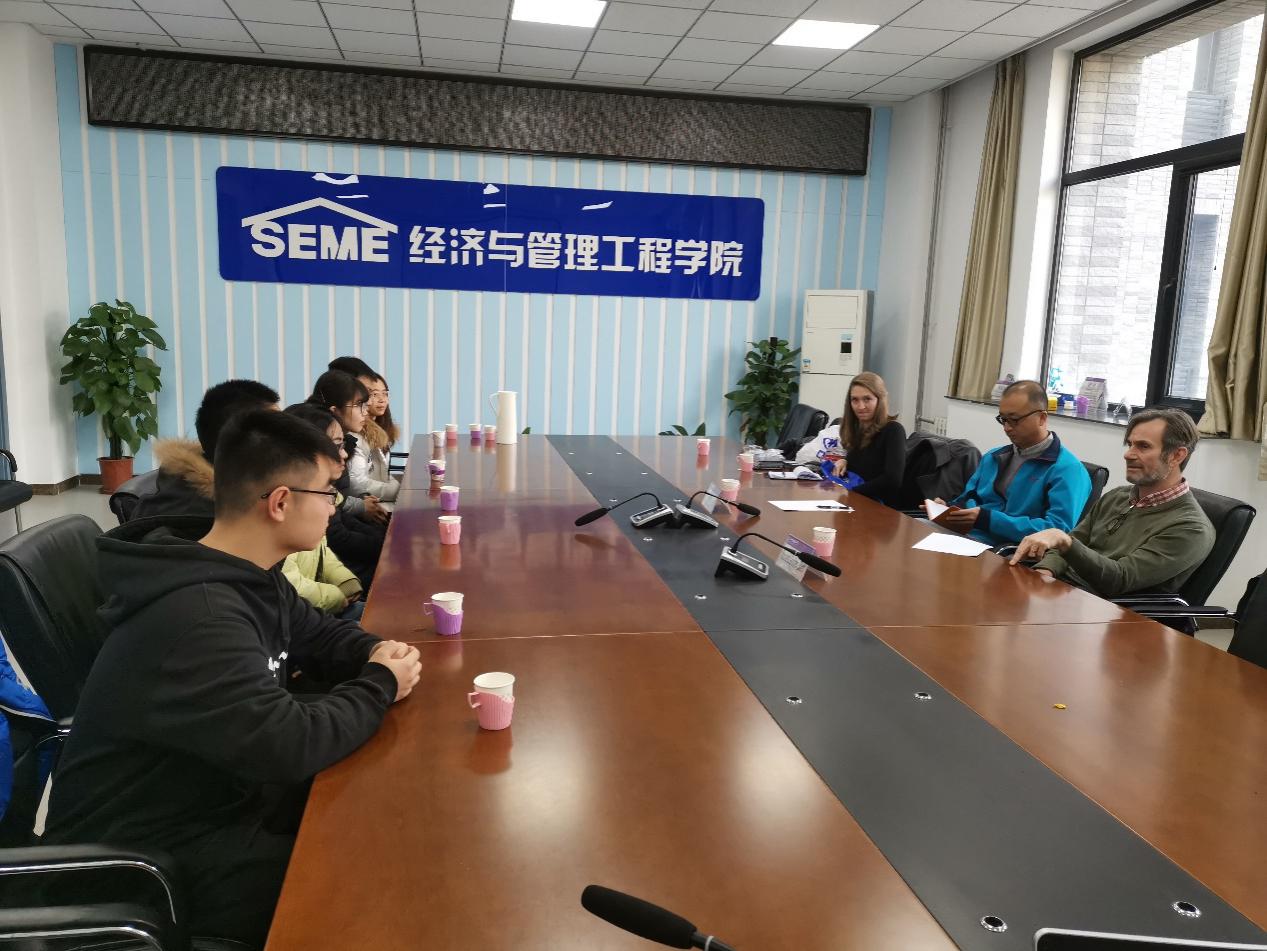 2018年11月30日上午,美国奥本大学来访团、美国建筑企业代表一行参加学生见面会以及参观经管实验中心、学校代表性实验室。奥本大学麦克沃特建筑学院院长Richard Burt、奥本大学中国交流项目合作处负责人刘峻山、奥本大学麦克沃特建筑科学学院招生工作负责人Catherine、美国霍尔德建筑公司高级副总裁 Drew Yantis、美国切诺基泵送混凝土公司David Wayne Bylsam及百合漫画 副院长周霞、工程管理系主任戚振强、外事秘书魏祎、百合漫画 实验中心教师李明与王硕参加了本次活动。