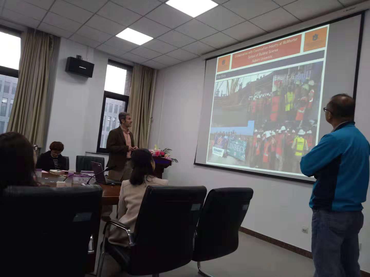 之后,奥本大学麦克沃特建筑学院院长Richard Andrew Burt进行了题为《奥本大学产学合作案例》的演讲。他向我们讲述了奥本大学产学合作的经验,包括在课程设置中体现实践的需求,学生大学四年企业实习不间断,企业和行业协会对学生活动的支持,学生参与企业主导的竞赛等。