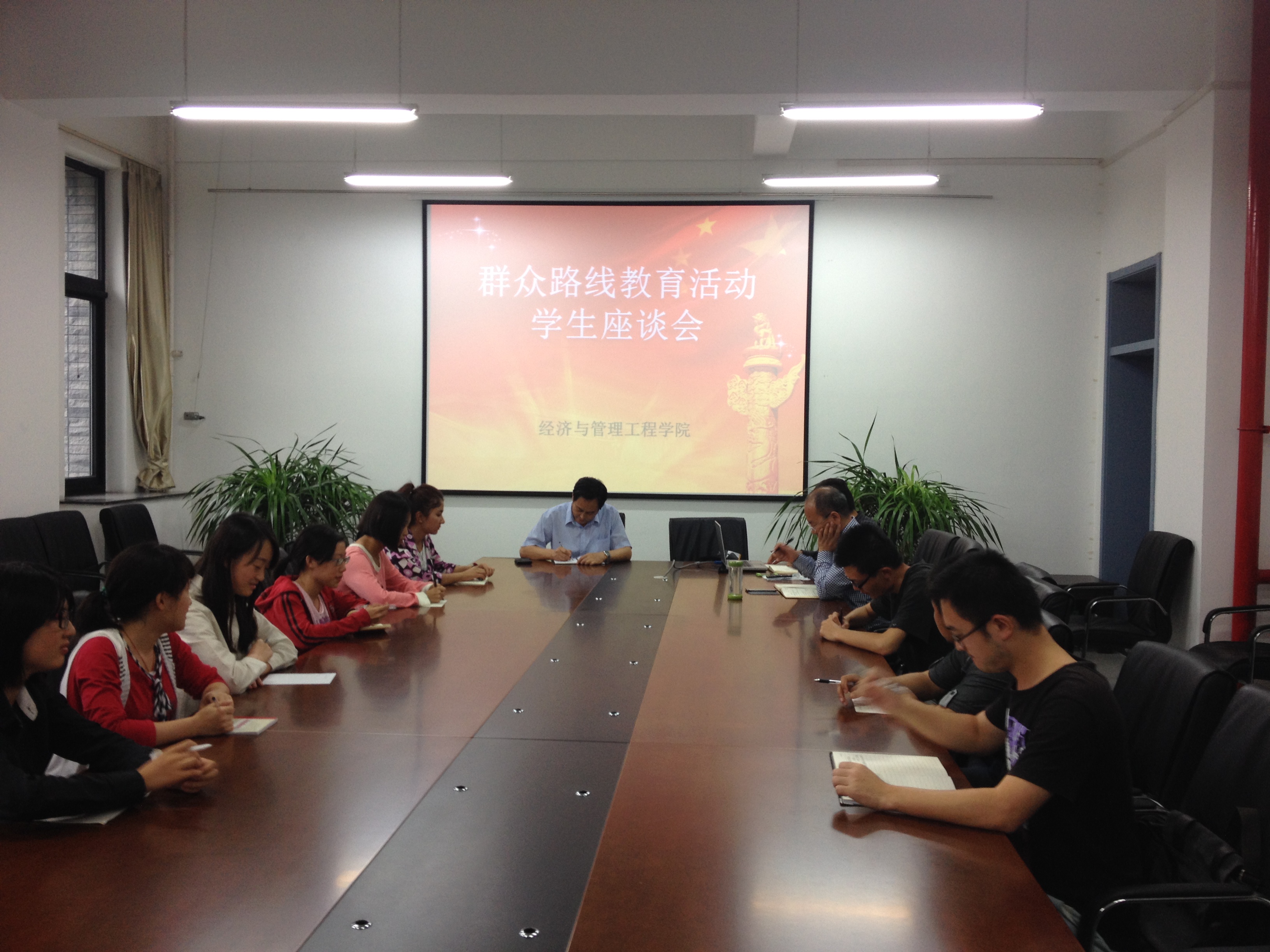 张庆春书记首先介绍了本次座谈会的主要目的,学院按照学校党委的部署和要求,近段时间以来一直在组织全院党员干部认真学习党的群众路线教育实践活动,希望同学们就围绕反对”四风”和学校学院发展建设的中心工作,开诚布公,畅所欲言,提出自己和同学们在学习、学业和生活中遇到的问题和困惑。座谈会上,同学们积极发言,对教材购买、选修课安排、学校摆渡车时间、英语教学及四六级考试和上课作息时间等问题提出了自己的看法。座谈会期间,与会领导耐心听取并记录了学生代表的发言,不时与学生代表就同学们存在的问题进行沟通,询问细节问题,并作出了回答。