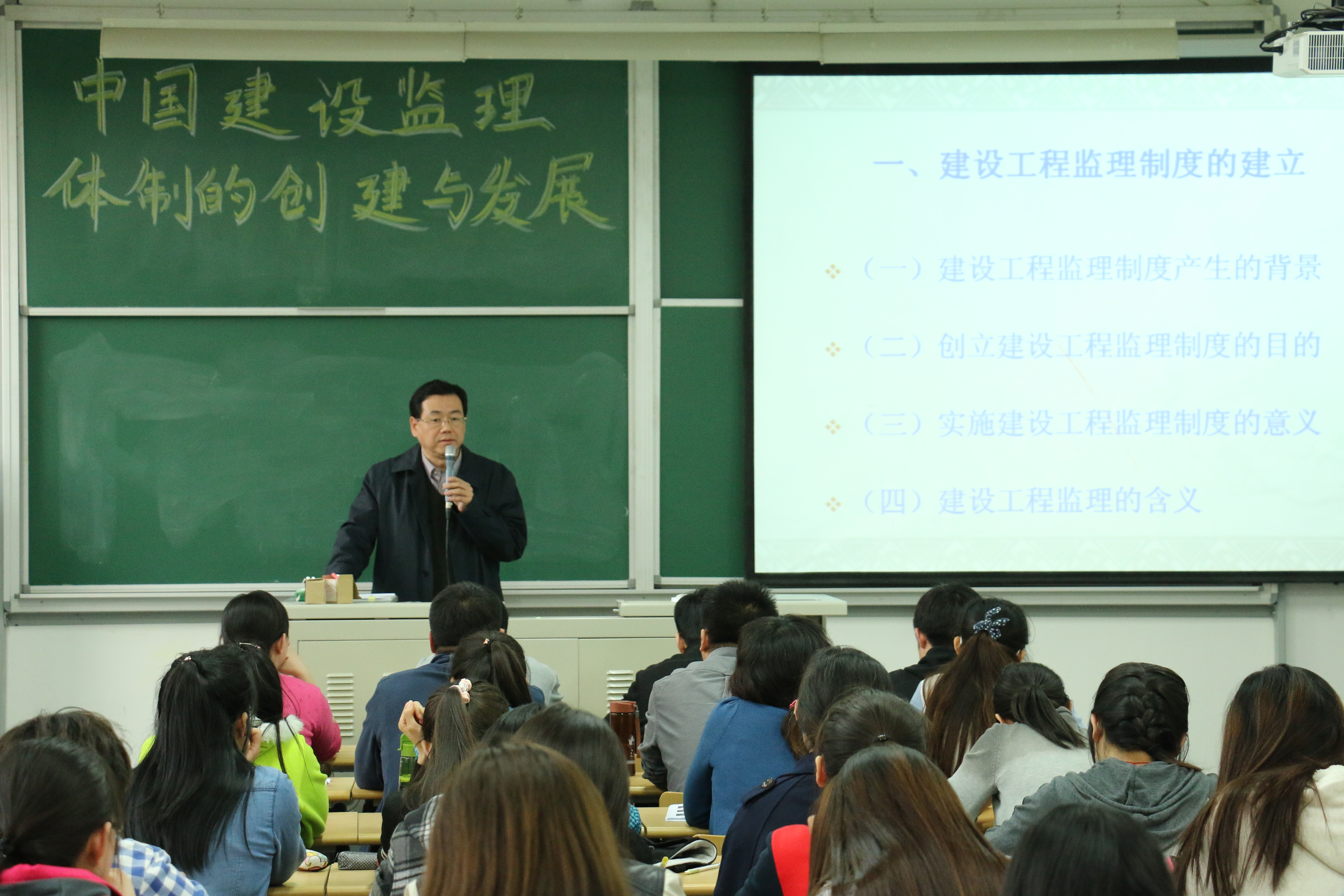 外聘硕士研究生导师田成刚老师为同学们讲述中国建设监理体制的行业发展及领域建设历程。