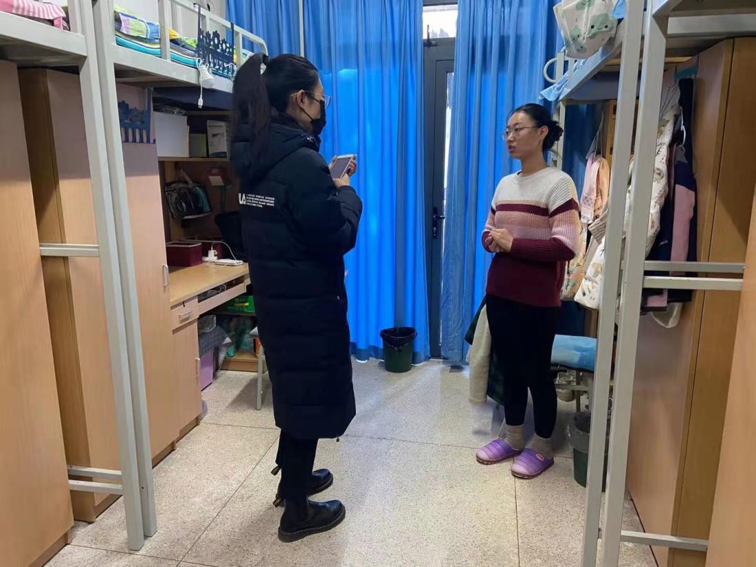 检查过程中,学院老师特别关心留校学生假期生活安排以及留校的原因,对每一位学生都进行了细致询问,嘱咐他们在疫情期间时刻注意自身安全和健康,做好防疫措施;有问题及时跟家人和学院老师联系。各年级辅导员密切注意与留校学生保持沟通和交流,时刻掌握好学生在校生活情况,在学生有需要时,及时有效地提供指导和帮助。