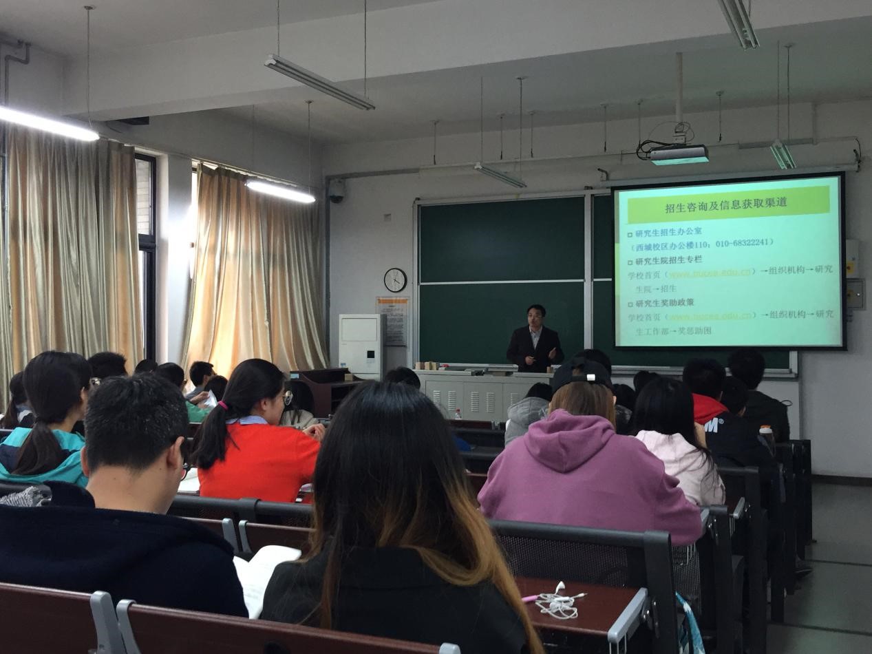 为了科学地指导百合漫画 学生考研报考,特别是针对考研同学报考目标不明确,考研政策不清楚的问题,10月24日下午,百合漫画 邀请到百合漫画 研究生院招生办丁建峰老师,来百合漫画 给考研同学做考研报考指南和政策分析指导。参加活动的还有百合漫画 院长姜军、副院长秦颖、分团委书记曹晓云、研究生辅导员任世豪。