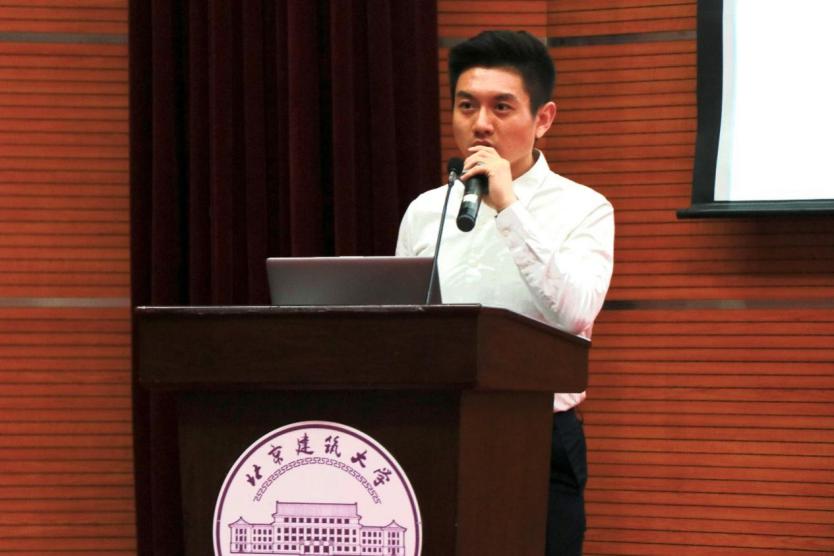 随后,班级就业导师代表丁锐讲话。他用风趣幽默的方式分享了自己的求职经历,并嘱咐大家要脚踏实地,不要原地踏步,他鼓励大家不要过分担忧,走好每一步就会有不错的结果。