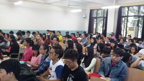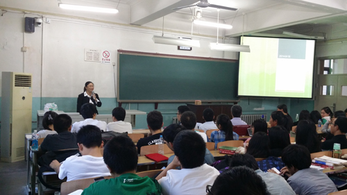 接下来,张宏老师从专业教师的角度介绍往届毕业生的就业去向,为同学们就业、考研、出国出谋划策,并详细介绍了毕业设计的基本情况,为同学们如何度过大学最后一年提出了一些建议。