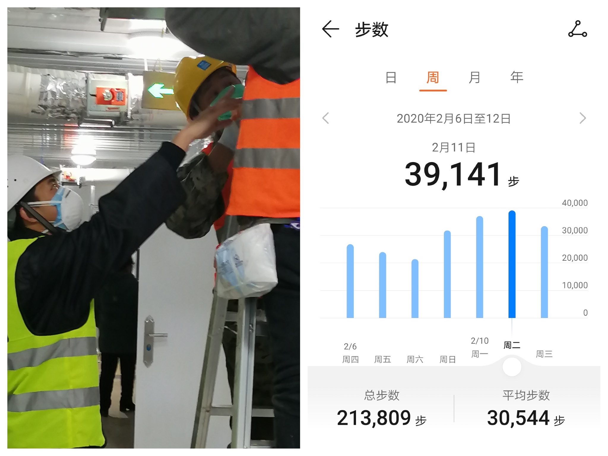 甘泉胜在雷神山医院建设现场工作及每天行走步数